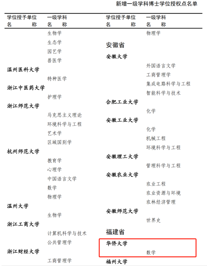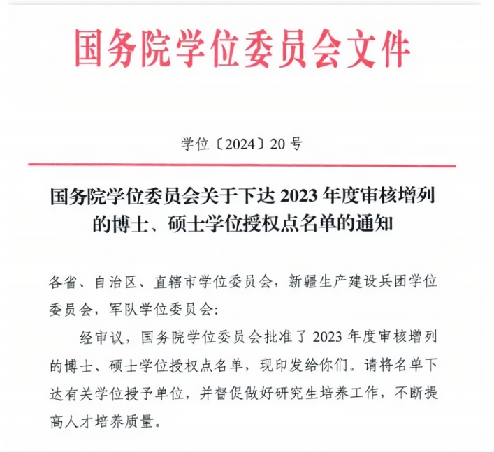 近日,国务院学位委员会下发《关于下达2023年度审核增列的博士、硕士学位授权点名单的通知》(学位〔2024〕20号),我校获批新增“数学”一级学科博士学位授权点。这是数学科学学院学科建设工作再上新台阶的标志性成果,也实现了几代华大数学人的梦想。