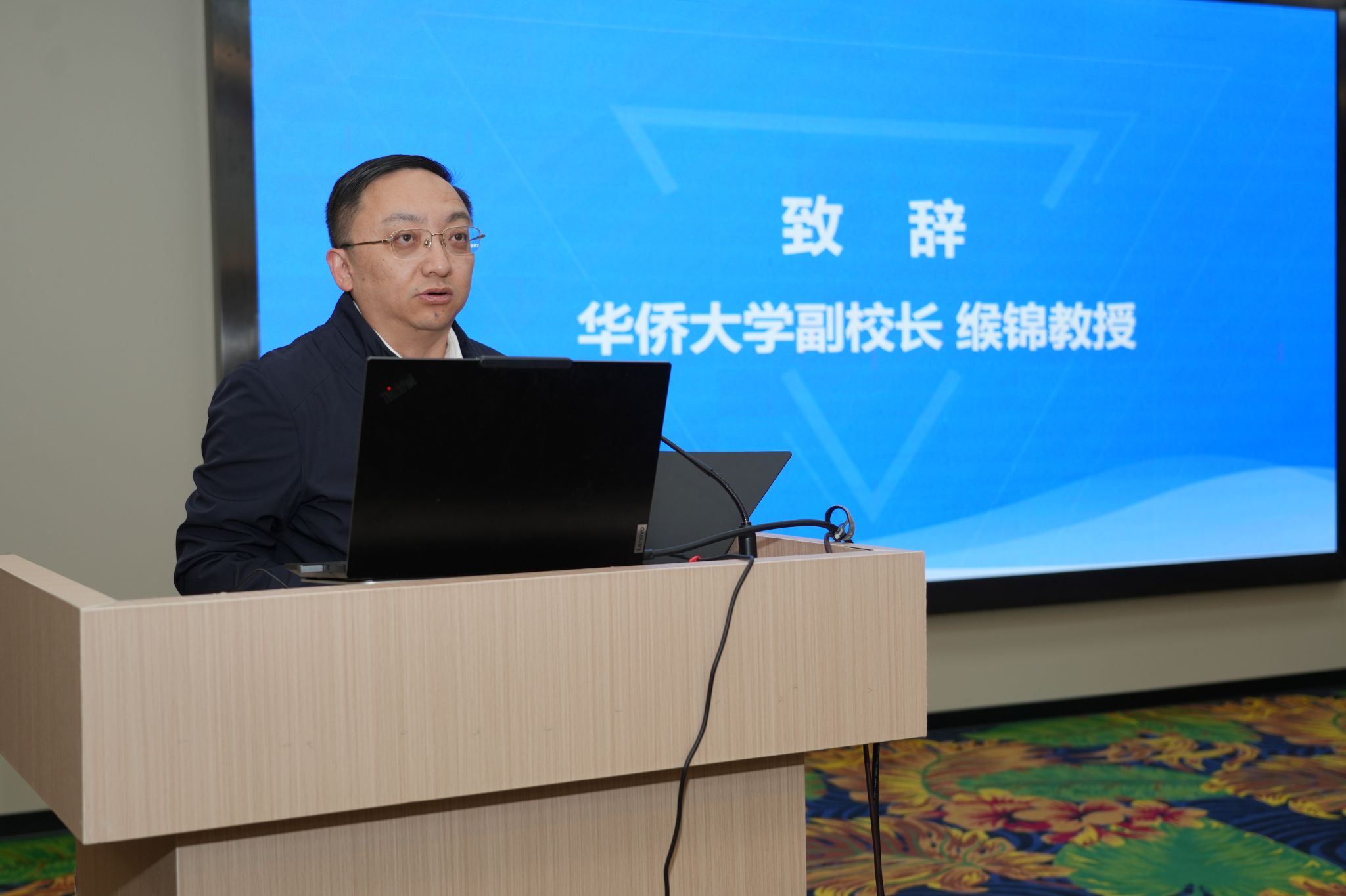 研讨会在泉州华侨大厦隆重举行,华侨大学副校长缑锦教授出席会议并发表致辞,向与会代表介绍了学校近年来在学科建设、人才培养、科学研究等方面的发展情况。同时,他代表学校,向长期以来关心、支持华侨大学数学学科建设与发展的各位专家学者致以诚挚的感谢,期待未来能与各方深化合作,携手推动数学学科高质量发展。会议名誉主席,欧洲科学院院士、香港城市大学陈关荣教授,对华侨大学主办此次高水平研讨会致以诚挚谢意,围绕复杂网络研究课题的发展前景进行了深入展望。中国科学院数学与系统科学研究院研究员、JSSC编委副主编赵延龙详细介绍了 JSSC 期刊的办刊理念与发展近况。网络科学与数学系列学术研讨会发起人、深圳大学丰建文教授,深情回顾了系列学术研讨会的创办历程与发展脉络。开幕式由华侨大学数学科学学院党委书记陈英文主持。